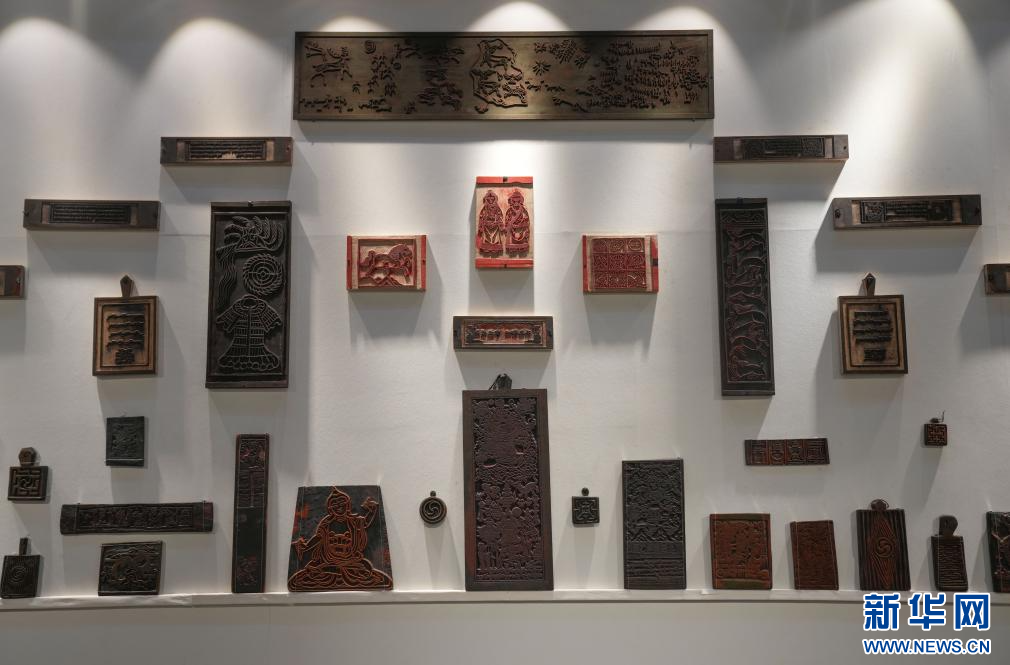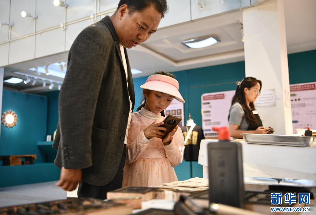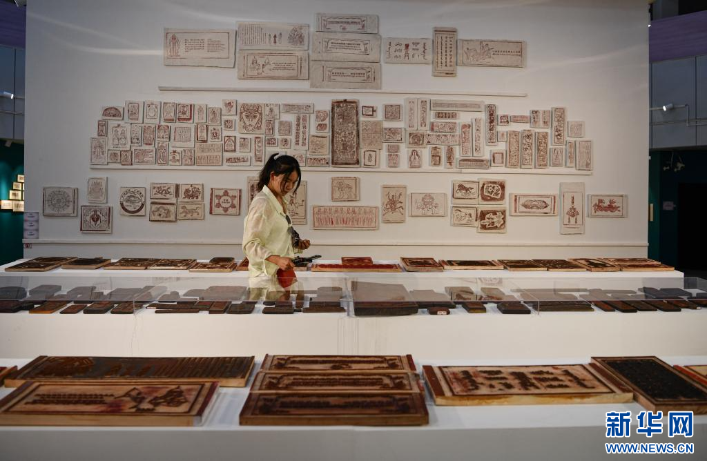 7月19日,工作人员在展示体验区的雕版及印刷品。