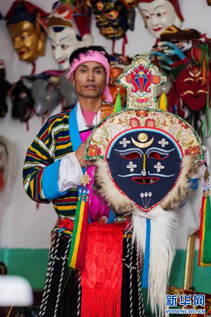 7月23日,藏戏演员拿着面具。新华网发吴金朋摄