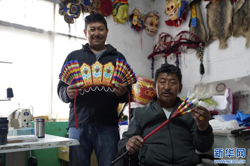 7月23日,藏戏道具手工制作匠人。新华网发朱俊摄