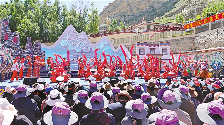 当天早上,还不等开幕式文艺演出开始,洛扎县文化广场上早已人潮涌动、热闹非凡。人们身着节日盛装,互致问候、笑靥如花。