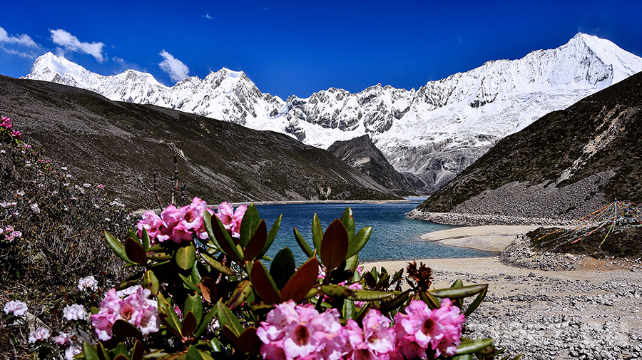 就这样,雄伟壮丽的雪山、冰清玉洁的湖水、开遍草原的花海交相呼应,给雪域高原带来了无尽的活力,行走其间,就仿佛穿梭在山水画中一般。(中国西藏网供稿/洛扎县融媒体)