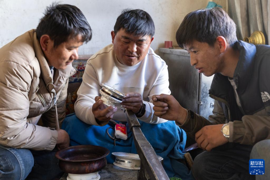 3月6日,扎西吉彩的手工匠人在讨论银器的造型。新华社记者姜帆摄