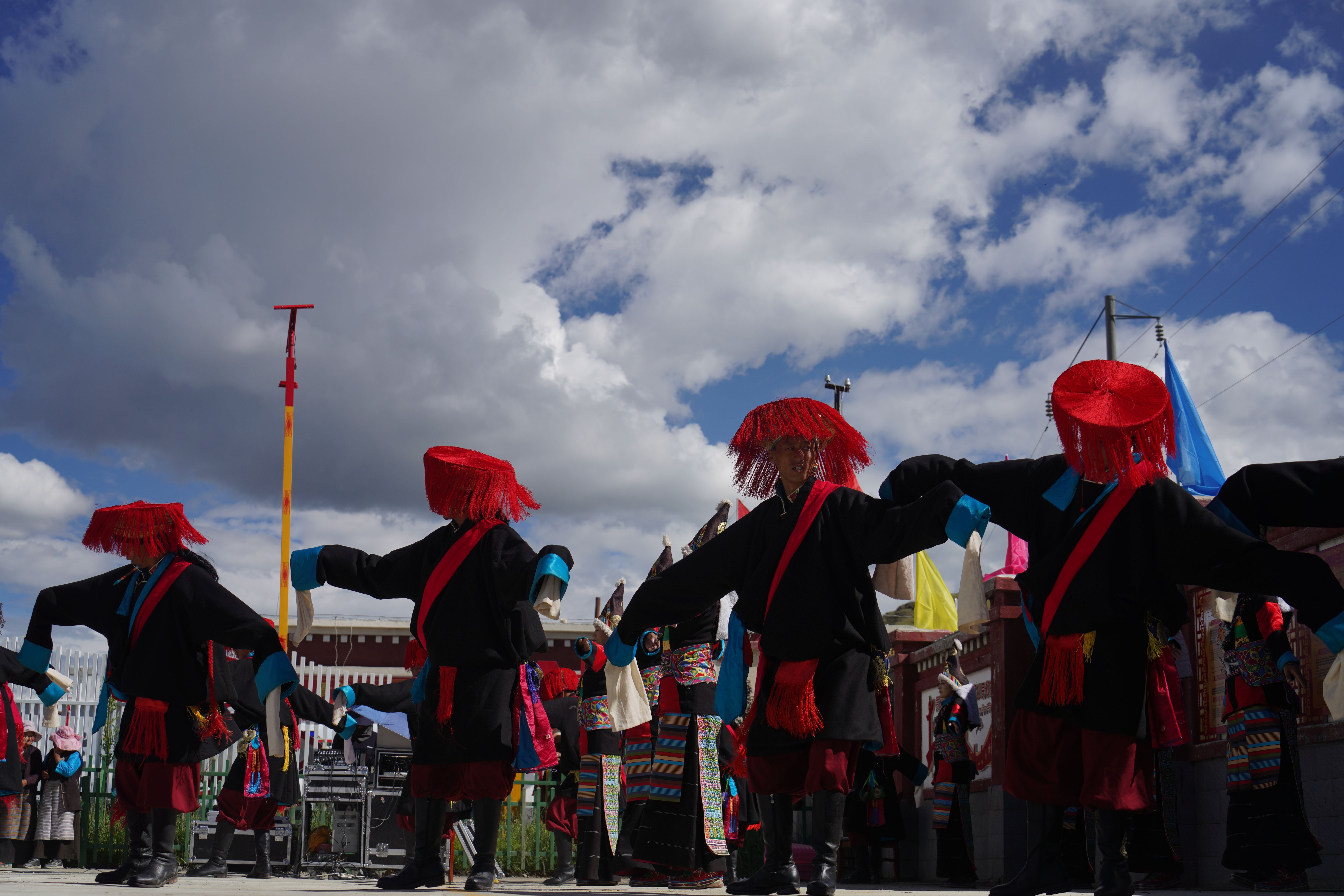 ▲羊卓雍措景区为沿途游客展演当地的民俗文化。中国网记者 胡俊 摄