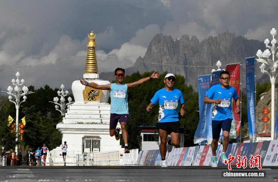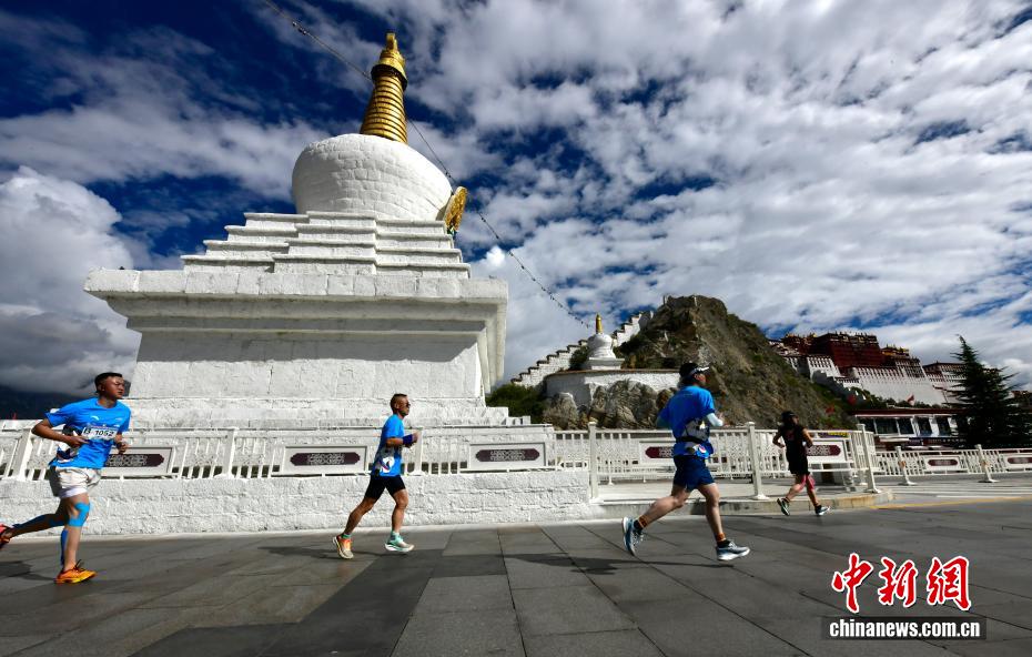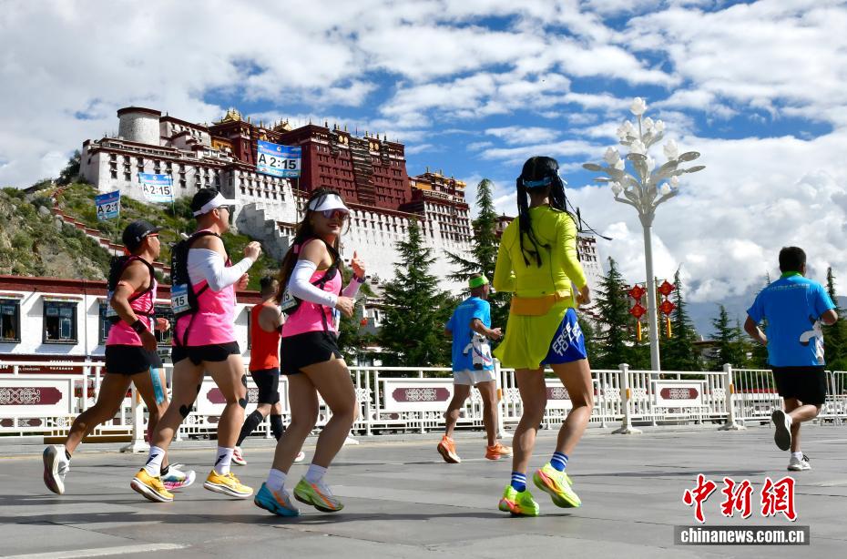 9月21日,2025拉萨半程马拉松在西藏自治区会展中心鸣枪开跑。本次赛事设置半程马拉松(21.0975公里)、竞速跑(10公里)和健康跑(5公里)三个组别,参赛规模7000人。图为参赛选手比赛中。中新社记者 李林 摄