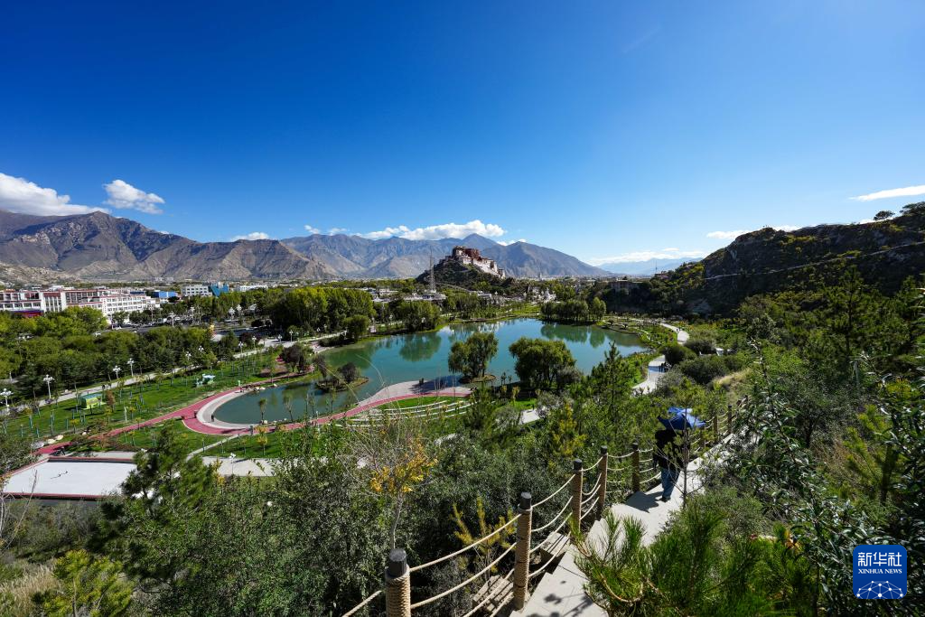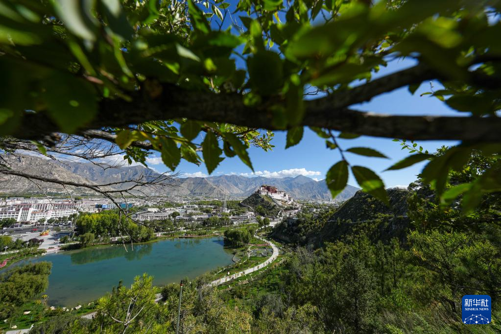 从拉萨团结公园旁的药王山步行道远眺布达拉宫(9月25日摄)。新华社记者晋美多吉摄