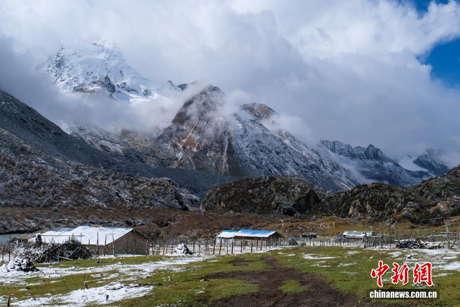 嘉黎县位于西藏自治区那曲市东南部,据悉,该县气候特殊,印度洋的暖湿气流沿易贡藏布河谷溯江而上,直抵嘉黎县境内的念青唐古拉山脉南麓,输送了大量宝贵的水分,造就了迷人的峡谷森林和海洋性冰川等风光,因此,嘉黎县也被誉为藏北“江南”。近日,中新网记者自驾嘉黎县看到,这里既有藏北草原风光,也有风景秀丽的原始森林、冰川峡谷等,深秋的嘉黎风光如画。图为10月17日,嘉黎县尼屋乡高山牧场迎来大雪。江飞波 摄
