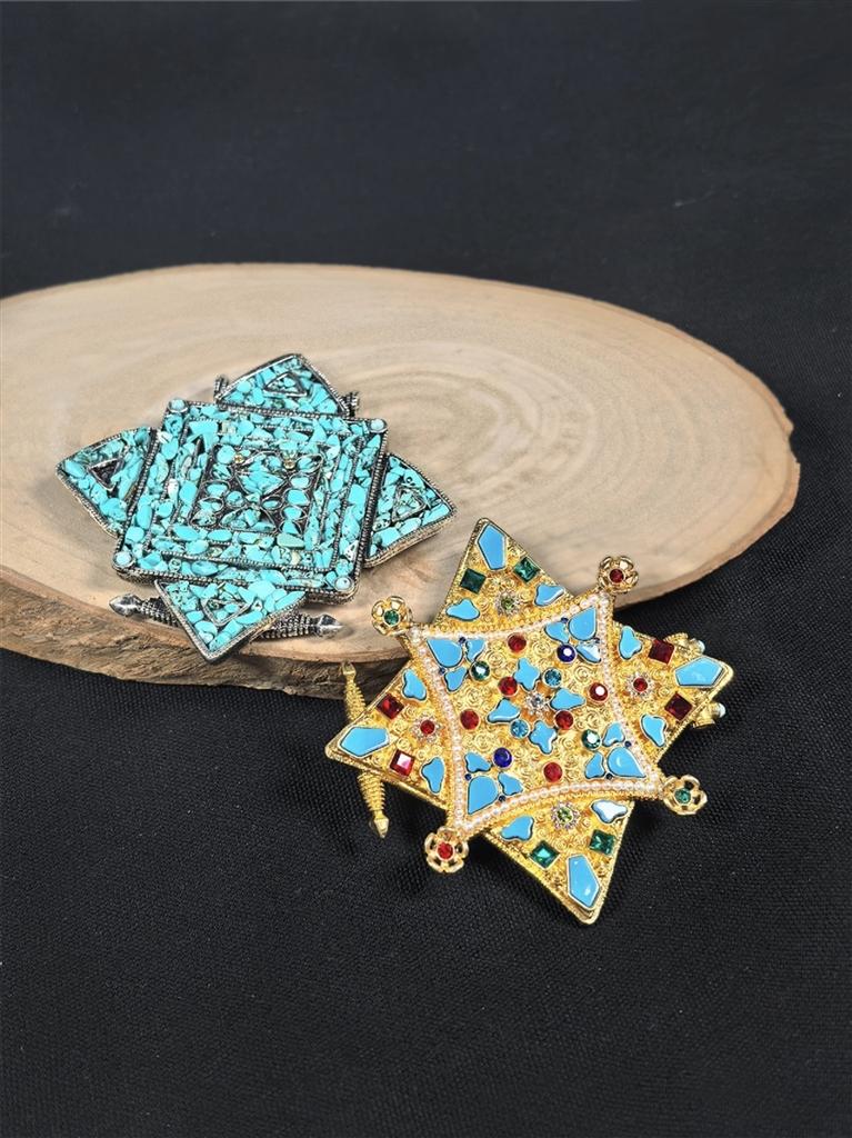 时间回到2024年9月,设计团队踏上西藏这片土地进行采风,为后续的设计工作筑牢了坚实根基。他们先后参观了西藏博物馆的两个常设展览,还走访了拉萨市内分布的多处非遗传习基地,现场观摩了藏靴、氆氇以及传统饰品的制作技艺。其中展览“离太阳最近的人”展示的服饰、木制茶碗、绿松石配饰等,给崔华留下了极为深刻的印象。崔华感慨道:“在如此严苛的自然环境下竟能诞生如此璀璨的文化珍品,实在出乎意料。而且,这些馆藏文物所展现出的热烈色彩和丰富图样,与我们的文创产品设计理念不谋而合,当时就按馆方要求,决定为‘藏装彩韵’和‘岩石会说话’两个系列提供设计。”