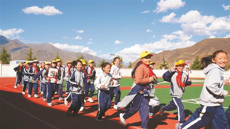 近年来,西藏各中小学积极开展以乒乓球、篮球、跳绳、足球以及特色广播体操等为主的大课间活动,极大丰富了学生课间活动,激发了学生参与运动的热情,让大家在享受运动的同时愉悦身心、增强体质。