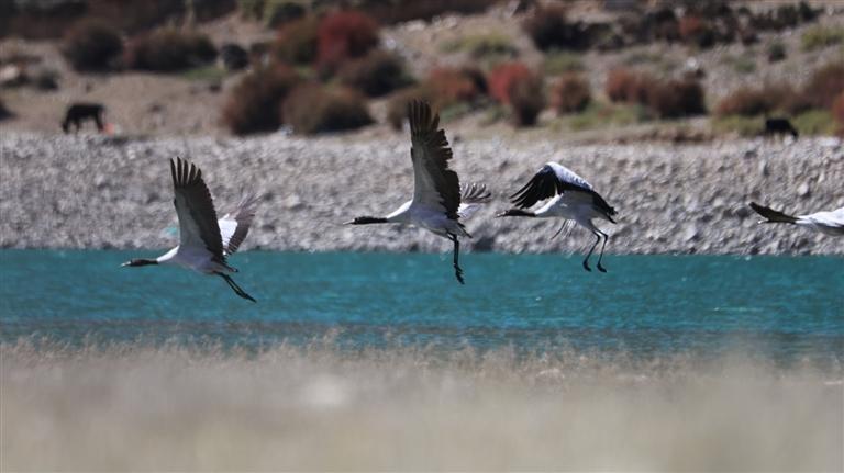 随着天气逐渐转冷,素有“高原仙子”美称的黑颈鹤开始南迁,前往西藏林周县、墨竹工卡县等地越冬。据悉,每年10月中下旬,黑颈鹤陆续飞抵雅鲁藏布江中游河谷等地越冬。
