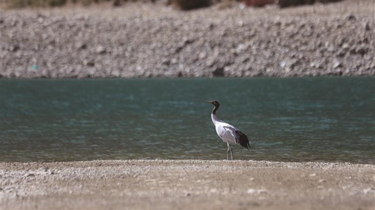 近日,记者在墨竹工卡县境内下乡途中偶遇惊喜——几只黑颈鹤悄然现身墨竹工卡县直孔水电站附近的水域,它们正是今年首批前来此地越冬的“高原贵客”。通过镜头,记者看到黑颈鹤迈着轻盈的步伐,在水边悠闲地走来走去,不时抬起头看向远处。几只黑颈鹤不时掠过水面,划开道道涟漪,或在河边低头觅食,或闲庭信步梳理羽毛,时而又挥翅舒展身姿,与周边成群的牛马、远处巍峨的雪山及静谧的湖泊相映成趣,勾勒出一幅人与自然和谐共生的绝美画卷。在直孔水电站水库的碧水银光里,这座水库正以万顷之广润泽田野、滋养大地生灵,守护着万物与水共生的亘古契约。