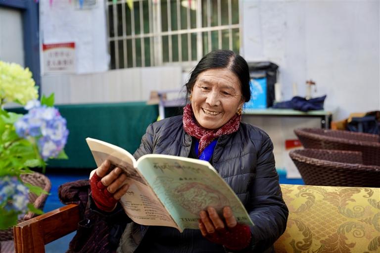 62岁的巴桑卓玛也在课堂里找回了新的生活乐趣。“以前我不识字,来这儿一年多,不仅学会了读和写,还学到了很多新知识。”巴桑卓玛说,“现在生活好了,就想多学些新东西,每天都盼着来教室,根本不想待在家里。当初也是听大家都说这里好,我才来的,现在觉得来对了!”