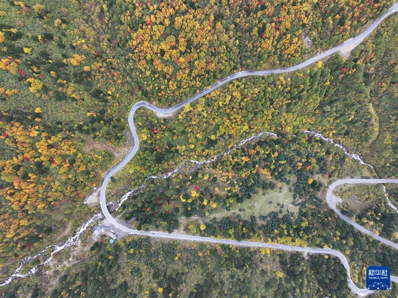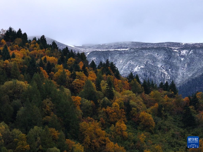 这是10月28日在林芝市巴宜区拍摄的色季拉山秋景(无人机照片)。新华社记者 卢丹阳 摄