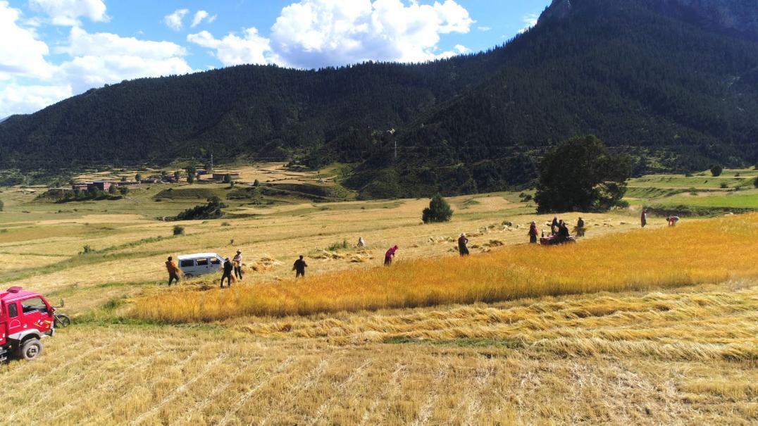 午后,当你走进普通的小村庄,就会目睹秋收的忙碌景象。村民们正在收割青稞,金色的青稞穗在阳光下闪闪发光。男人们挥舞着镰刀,女们则忙着捆扎。尽管劳作辛苦,他们的脸上却洋溢着收获的喜悦。