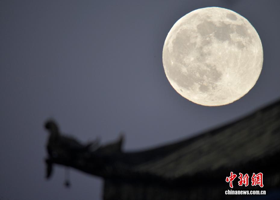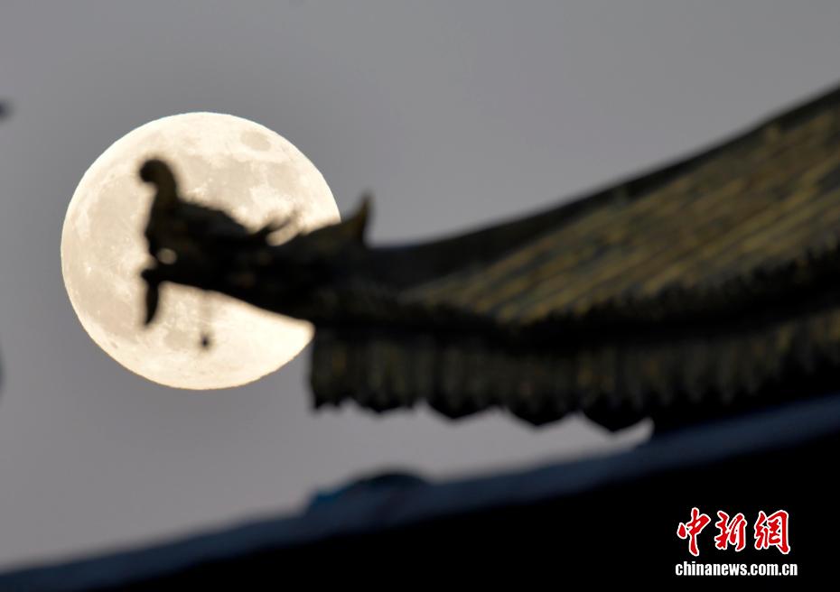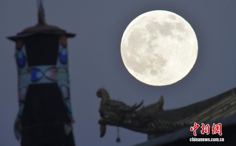 11月5日,西藏日喀则扎什伦布寺拍摄的“超级月亮”。“超级月亮”是指月球运行到近地点时恰好达到满月状态,此时月亮看起来比平时更大更亮。