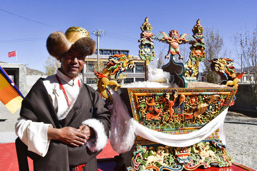 中国西藏网讯“西藏的雕刻技艺发展历史可以追溯到吐蕃时期(公元七世纪),作为一门纯手工的雕刻技艺,当时雕刻产品生产量较少、价格昂贵,制作过程复杂而精密,雕刻出来的佛像和镌刻的文字以其质量和独具特色的风格延续成为了当时富贵家庭的珍藏品,让雕刻技艺也成为了西藏老百姓心目中很崇拜的一门技术。”11月10日,在西藏自治区日喀则市白朗县玛乡土古村,记者见到了土古喜格传统雕刻技艺的第四代传承人果杰。