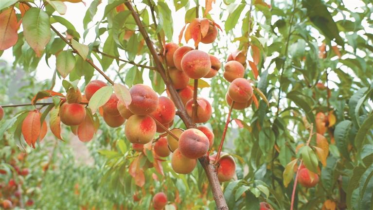 西藏园润农业有限公司冬桃种植基地里成熟的冬桃。