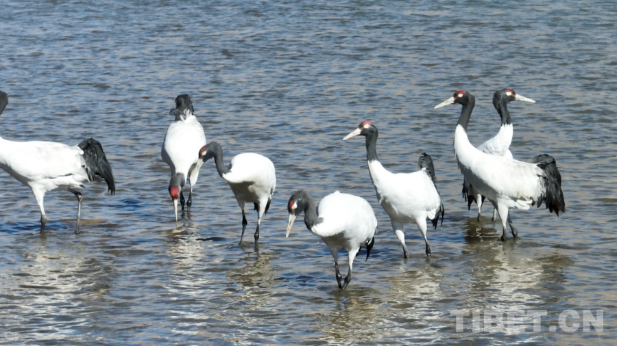 “每年10月底到11月上旬,黑颈鹤就会从北方迁徙过来越冬。”南木林县巡护员嘎旦仁增介绍,“这几年加大生态保护力度,黑颈鹤的栖息环境越来越好,越冬数量也一年比一年多,年均能达到2000只以上。”