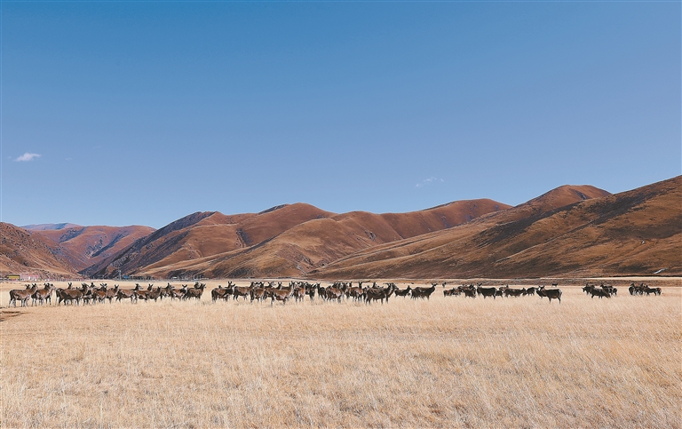 昌都市类乌齐县保护区内的马鹿。记者白玛泽旺摄
