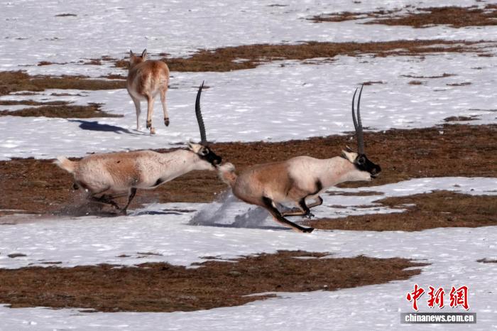 目前正值藏羚羊交配期,西藏申扎县自然资源和林业草原局组织15名野保员深入8个乡镇开展冬季巡护。随着保护力度加大,野保员和藏羚羊栖息地周边民众已很容易接近这些“高原精灵”。
