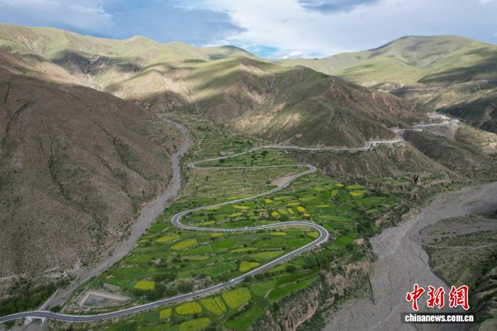 2025年7月15日,航拍西藏自治区拉萨市曲水县境内的岗巴拉山盘山公路。(无人机画面)中新社记者江飞波摄