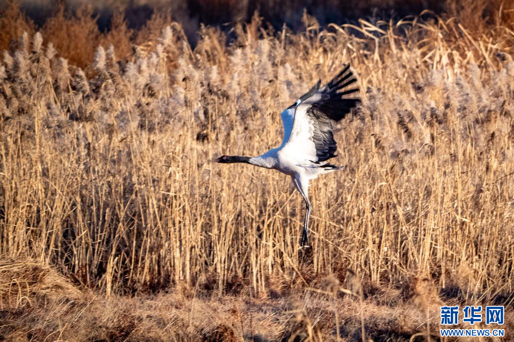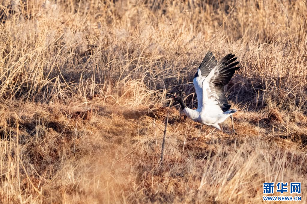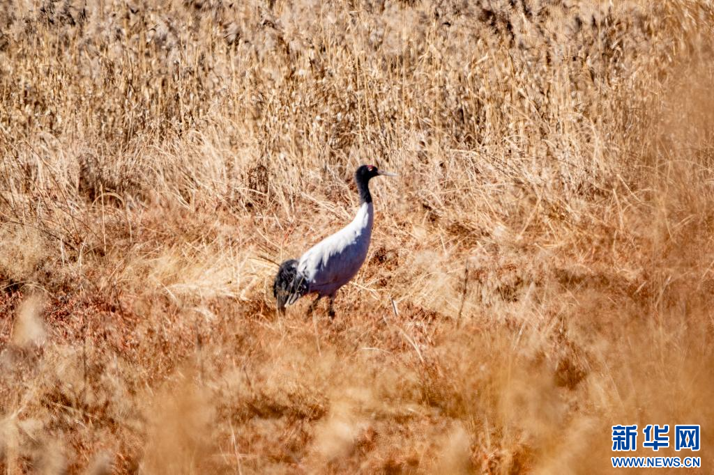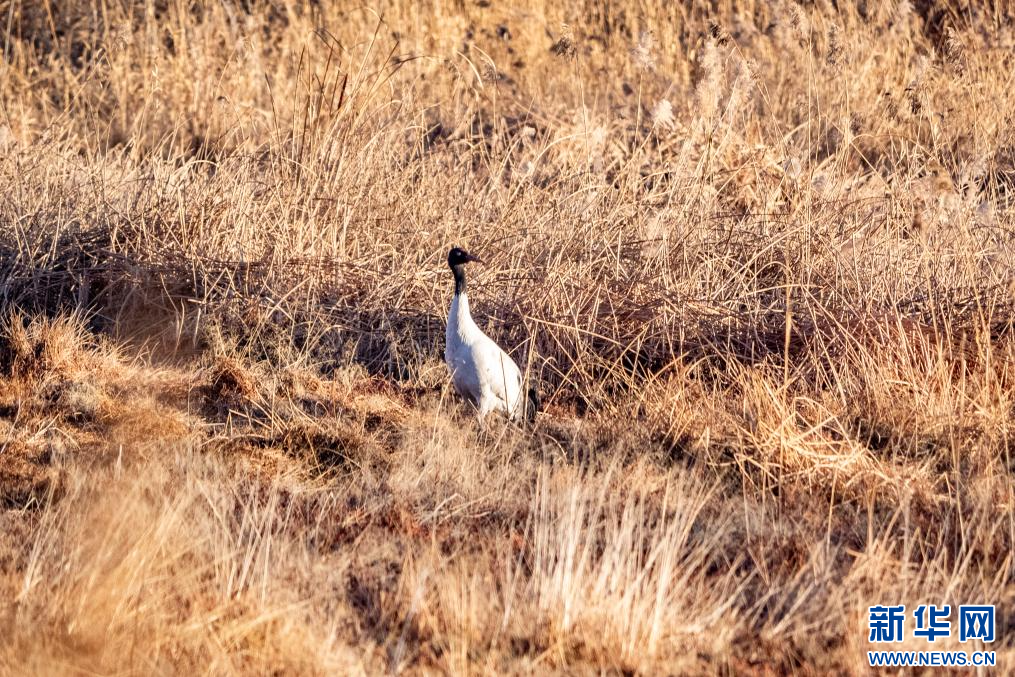 1月10日,在拉萨市拉鲁湿地拍摄的黑颈鹤。新华网旦增努布摄
