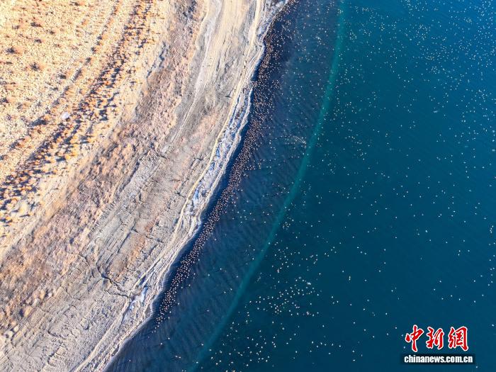1月18日,成群候鸟在沉错水域越冬。(无人机照片)中新社记者贡嘎来松摄
