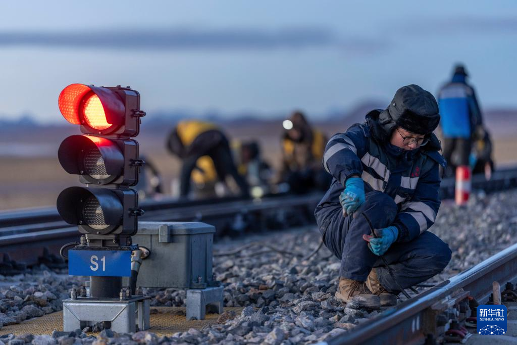 1月23日,扎加藏布信号工区工长王富生对S1信号机进行日常养护。新华社记者旦增尼玛曲珠摄