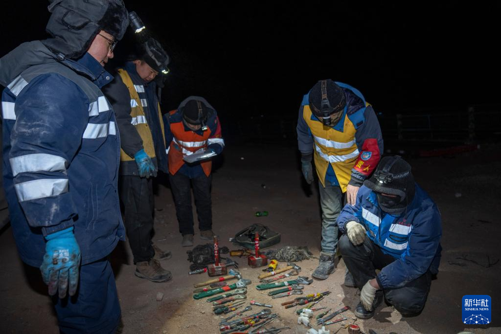 1月23日,扎加藏布信号工区信号工下道后清点工机具。新华社记者旦增尼玛曲珠摄