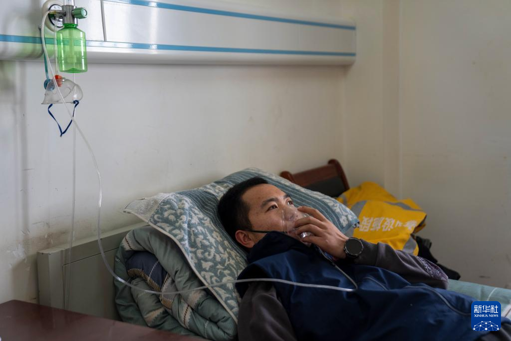 1月24日,扎加藏布信号工区职工陈占彪返回工区后在宿舍吸氧。新华社记者旦增尼玛曲珠摄
