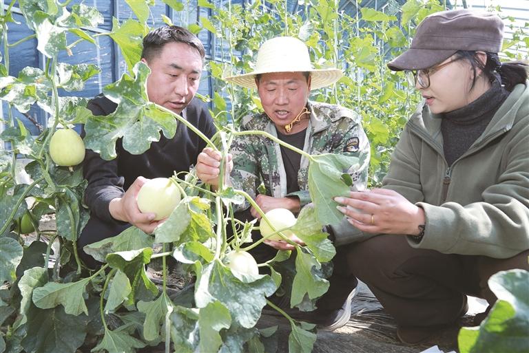 园区技术人员正在给工作人员指导种植技术。