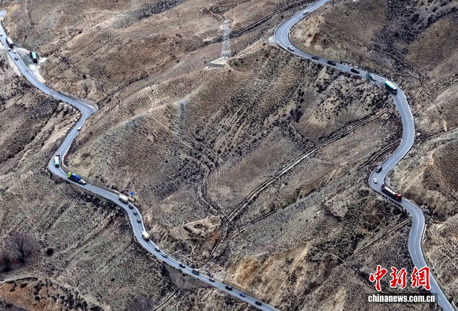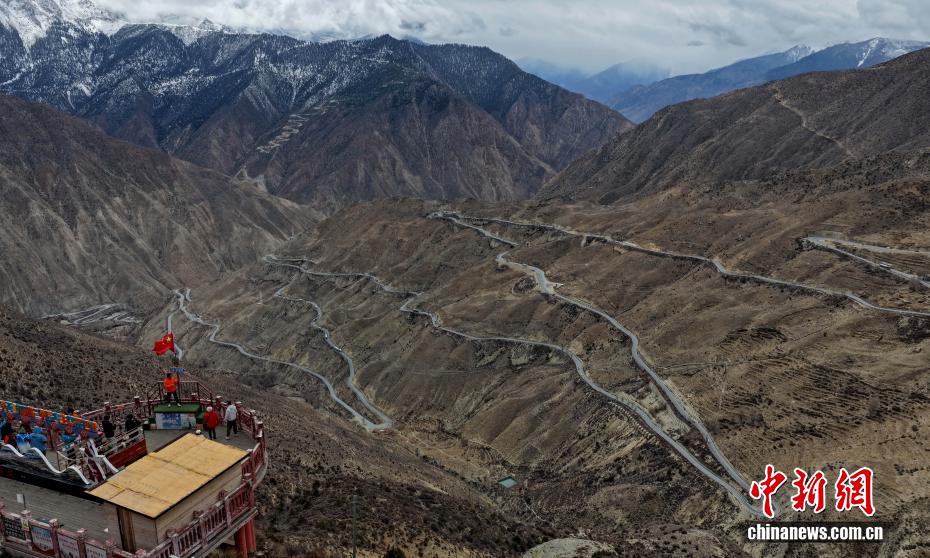 3月25日,川藏线“天路72拐”观景台拍摄的川藏公路。位于西藏昌都市川藏公路线上的“天路72拐”,全长仅30多公里,高差却达1800余米。因坡陡弯急、地势险峻成为川藏公路上极具视觉冲击力的打卡点,吸引过往游客在观景台驻足打卡拍照。中新社记者李林摄