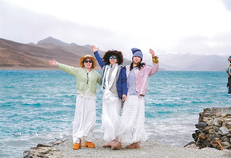 图为游客游览山南市浪卡子县羊卓雍错。记者武沛涛摄